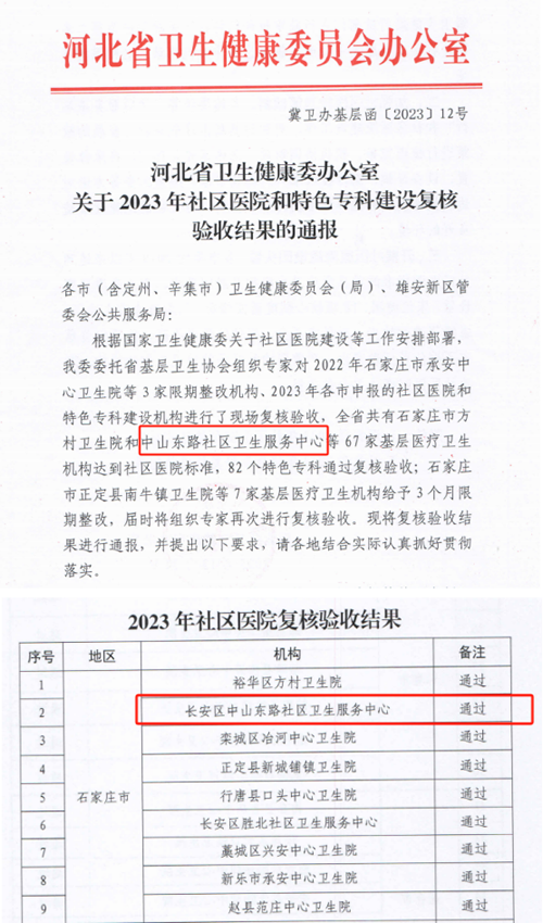 | 12月21日,河北省衛(wèi)生健康委辦公室印發(fā)了《關(guān)于2023年社區(qū)醫(yī)院和特色?平ㄔO(shè)復(fù)核驗收結(jié)果的通報》,城發(fā)投集團所屬市政集團職工醫(yī)院(長安區(qū)中山東路社區(qū)衛(wèi)生服務(wù)中心)順利通過2023年社區(qū)醫(yī)院驗收。 職工醫(yī)院高度重視此次復(fù)核驗收工作,按照以驗促建、以驗促改、驗建結(jié)合、重在內(nèi)涵的指導(dǎo)方針,扎實做好各項工作,持續(xù)推動醫(yī)院基本醫(yī)療、基本公共衛(wèi)生服務(wù)和綜合管理等工作的優(yōu)化提升,獲得上級專家的充分肯定。 優(yōu)質(zhì)醫(yī)療服務(wù)沒有終點,只有連續(xù)不斷的新起點。職工醫(yī)院將持續(xù)深入優(yōu)化醫(yī)療服務(wù)資源配置,堅持“增強服務(wù)意識,提高醫(yī)療質(zhì)量,方便群眾就醫(yī),促進和諧發(fā)展”的服務(wù)理念,總結(jié)經(jīng)驗、積極探索,不斷提升醫(yī)療衛(wèi)生服務(wù)能力,以高質(zhì)量發(fā)展為總體目標(biāo),建立優(yōu)質(zhì)醫(yī)療服務(wù)長效機制,滿足人民群眾日益增長的健康服務(wù)需求,助力醫(yī)院高質(zhì)量發(fā)展! |